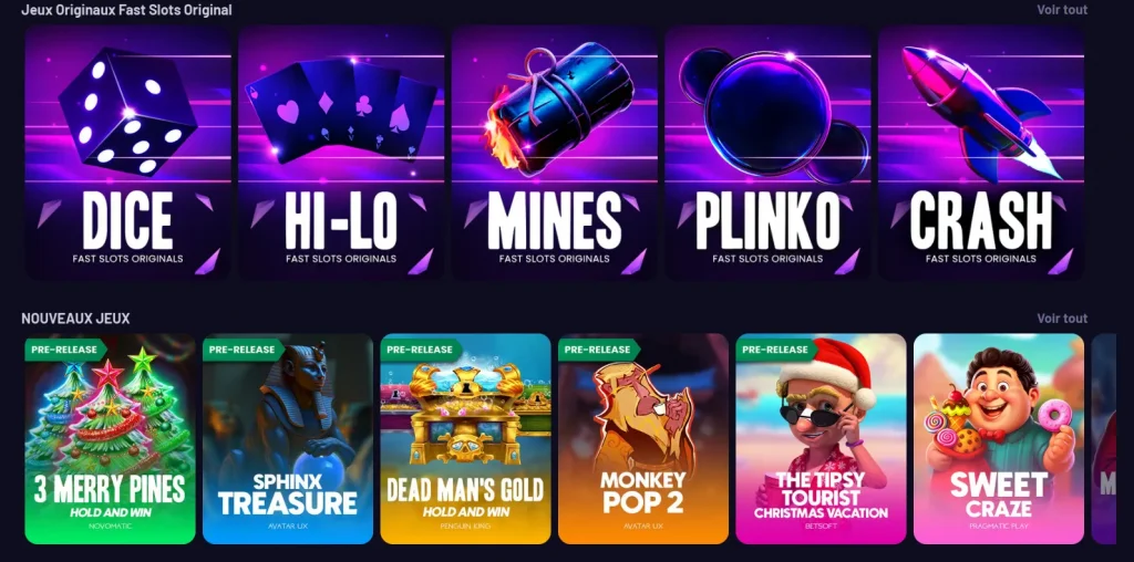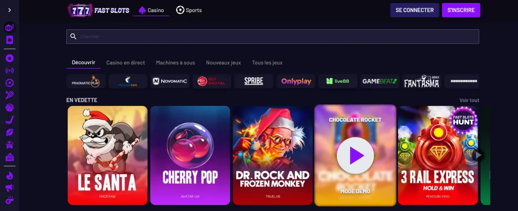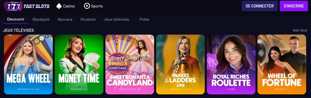 Les jeux avec croupiers en direct reproduisent l’atmosphère d’un établissement physique, grâce à de vraies tables retransmises en temps réel. Fast Slots propose du blackjack live, de la roulette, du baccarat ainsi que des game shows, assurés par des studios spécialisés.