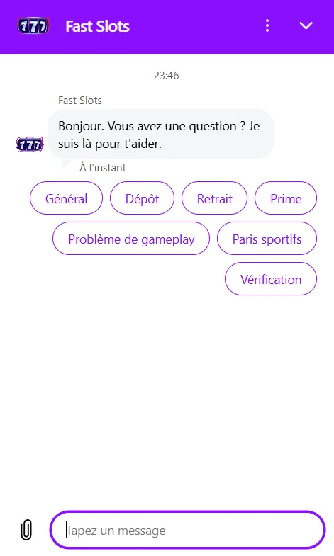 Assistance clientèle de Fast Slots Casino