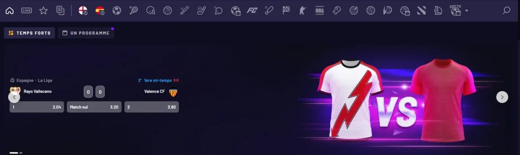 La section paris sportifs offre la possibilité de parier sur un vaste éventail de compétitions, des grandes ligues mondiales aux championnats régionaux. Les utilisateurs peuvent miser avant le coup d’envoi des rencontres ou en direct, avec des cotes fluctuant au gré de l’action.