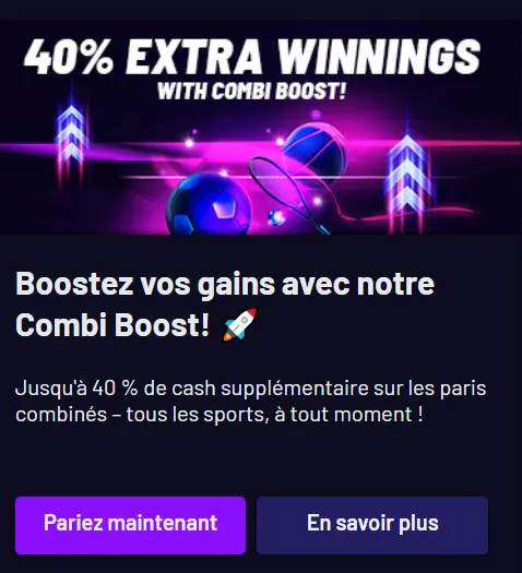 Cette diversité offre aux joueurs l’opportunité de se focaliser sur les domaines qu’ils maîtrisent le mieux. Associée au bonus Combi Boost, elle rend l’offre de paris sportifs particulièrement séduisante pour les adeptes de combinés.
