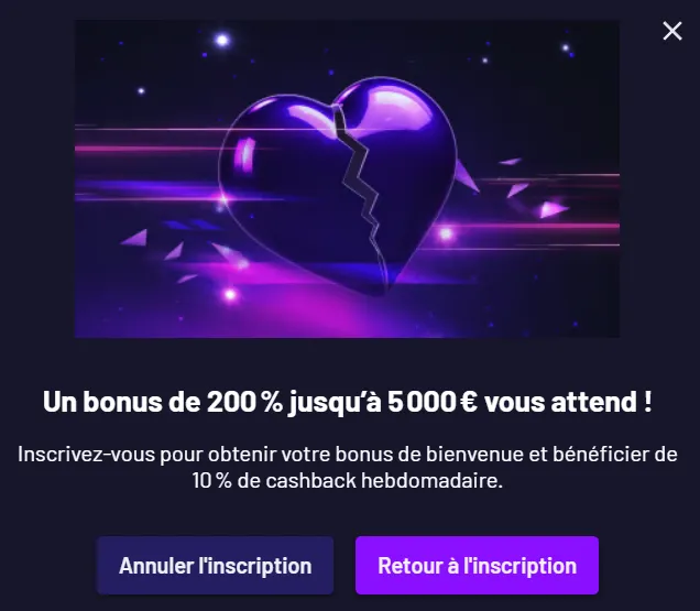 | Bonus de bienvenue | 200% jusqu’à 5 000 € + 50 tours gratuits | Dépôt min. 20 €, wagering 30x, validité 7 jours |