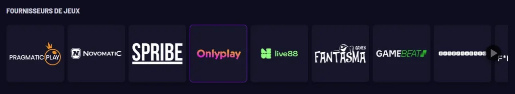 Les utilisateurs peuvent sélectionner un fournisseur directement dans le lobby pour n’afficher que ses slots. Cela permet, par exemple, de se concentrer sur les nouveautés d’un éditeur donné ou de retrouver rapidement des mécaniques de jeu auxquelles on est déjà habitué.